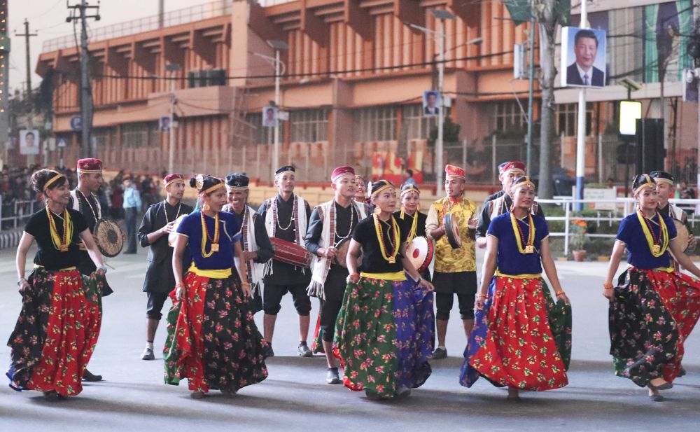 2019年10月12日,尼泊爾首都加德滿都,尼泊爾民眾載歌載舞,熱烈歡迎中國國家主席習(xí)近平來訪。新華社記者丁林?jǐn)z