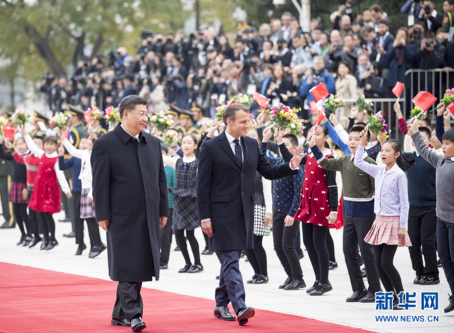 11月6日,國(guó)家主席習(xí)近平在北京人民大會(huì)堂同法國(guó)總統(tǒng)馬克龍會(huì)談。這是會(huì)談前,習(xí)近平在人民大會(huì)堂東門(mén)外廣場(chǎng)為馬克龍舉行歡迎儀式。新華社記者 燕雁 攝