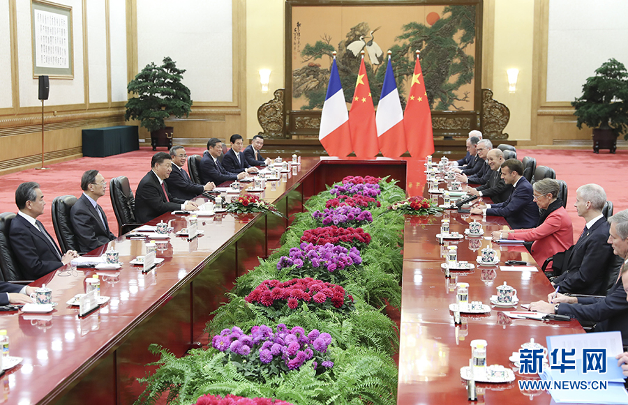 馬克龍表示,很高興在法中建交55周年之際再次訪華,我同習(xí)近平主席頻繁交往,深化了法中友誼和政治互信,有力推動(dòng)了務(wù)實(shí)合作。我完全贊同習(xí)近平主席對(duì)深化法中合作提出的看法。法中在許多重大國(guó)際問(wèn)題上持有相同立場(chǎng),在當(dāng)前國(guó)際形勢(shì)下,法中作為兩個(gè)大國(guó),負(fù)有特別重要的責(zé)任,法國(guó)加強(qiáng)同中國(guó)的對(duì)話和合作,具有重要示范作用。對(duì)雙方之間的一些分歧,法方愿本著相互尊重的精神妥善處理。法國(guó)企業(yè)熱切期待抓住中國(guó)擴(kuò)大對(duì)外開(kāi)放的契機(jī),進(jìn)一步進(jìn)入中國(guó)市場(chǎng),擴(kuò)大對(duì)華農(nóng)產(chǎn)品出口,加強(qiáng)在航空、航天、民用核能等傳統(tǒng)領(lǐng)域合作,拓展科技創(chuàng)新、金融等領(lǐng)域合作。中方在法國(guó)發(fā)行歐元債券,這對(duì)法國(guó)具有重大意義。法方對(duì)中國(guó)企業(yè)赴法合作持開(kāi)放態(tài)度,不會(huì)針對(duì)中國(guó)企業(yè)關(guān)上市場(chǎng)大門(mén)。法方愿推動(dòng)“一帶一路”同歐盟歐亞互聯(lián)互通戰(zhàn)略對(duì)接,共建綠色“一帶一路”。法中要擴(kuò)大人文交流,促進(jìn)文明互鑒。法中要共同維護(hù)多邊主義,在反恐、伊朗核等問(wèn)題上加強(qiáng)戰(zhàn)略溝通協(xié)調(diào),推動(dòng)世貿(mào)組織改革早日取得進(jìn)展。法中將共同發(fā)表《法中生物多樣性保護(hù)和氣候變化北京倡議》,兩國(guó)可以在這些重要問(wèn)題上發(fā)揮引領(lǐng)作用。在當(dāng)前充滿不確定性的世界里,歐盟深化對(duì)華合作至關(guān)重要,法方愿推動(dòng)歐中關(guān)系深入發(fā)展,加快歐中投資協(xié)定談判進(jìn)程。