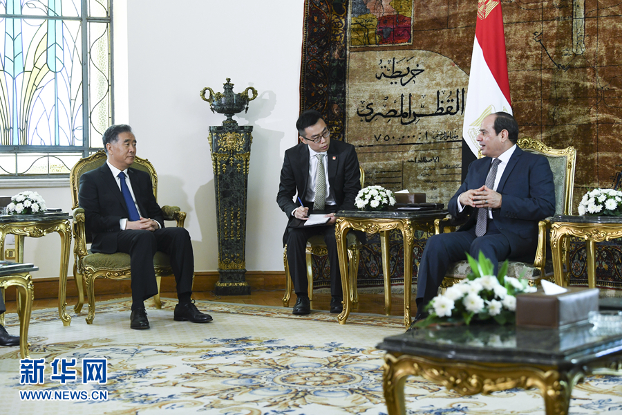 塞西請汪洋轉(zhuǎn)達(dá)對習(xí)近平主席的親切問候,對中國共產(chǎn)黨執(zhí)政70年來取得的巨大成就表示衷心祝賀,對埃中關(guān)系達(dá)到前所未有的水平和深度感到由衷喜悅。他表示,埃方支持“一帶一路”倡議,歡迎中方企業(yè)加大對埃及投資。希望中方進(jìn)一步發(fā)揮影響力,推動(dòng)中東地區(qū)和平穩(wěn)定。埃方愿與中方就去極端化等問題加強(qiáng)交流互鑒。