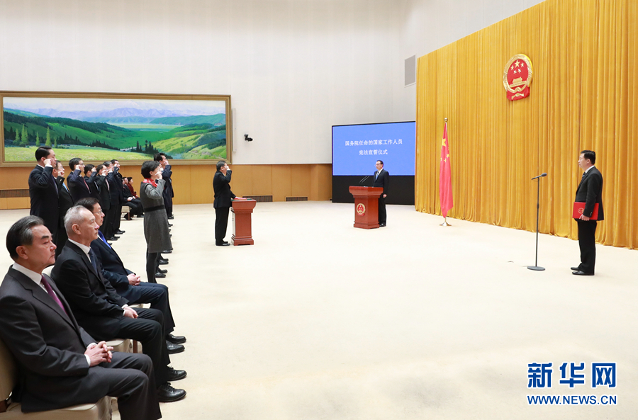 宣誓后,李克強(qiáng)說,忠于憲法、遵守法律是每一名公職人員必須遵循的基本行為準(zhǔn)則,讓人民過上好日子是每一名公職人員必須謹(jǐn)記的奮斗目標(biāo)。他要求大家堅(jiān)持以習(xí)近平新時(shí)代中國特色社會(huì)主義思想為指導(dǎo),依法履職,為民履職,實(shí)干履職,廉潔履職。帶頭尊法學(xué)法守法用法,積極推進(jìn)改革創(chuàng)新,在攻堅(jiān)克難中彰顯擔(dān)當(dāng),在狠抓落實(shí)中展現(xiàn)作為,嚴(yán)守紀(jì)律規(guī)矩,嚴(yán)格秉公用權(quán),勤儉辦事,厲行節(jié)約,傾情竭力把人民群眾最關(guān)切最期盼的事情辦實(shí)辦好,齊心協(xié)力推動(dòng)經(jīng)濟(jì)社會(huì)持續(xù)健康發(fā)展。