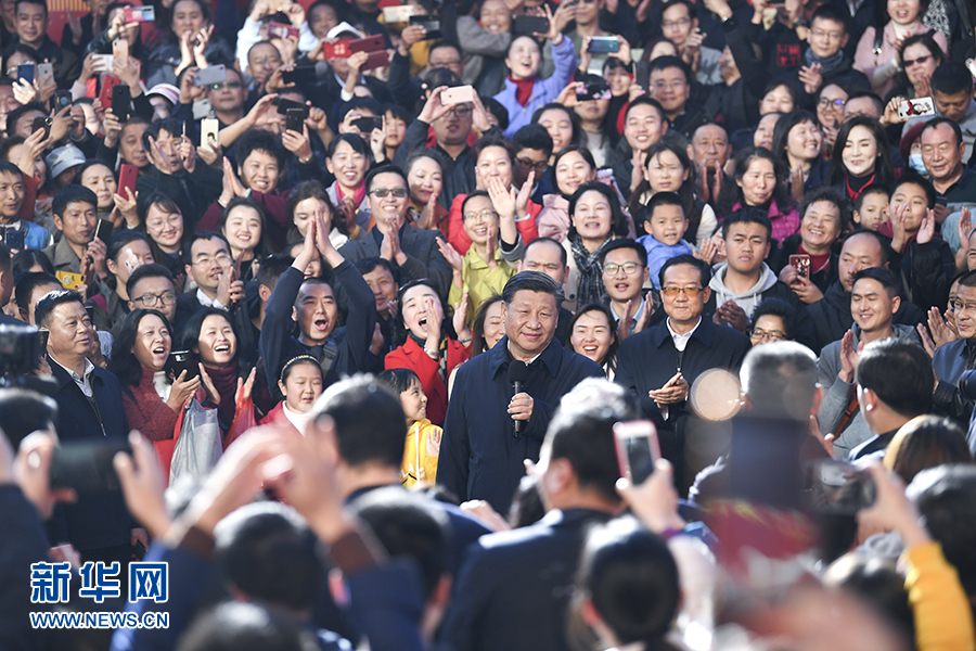 1月19日至21日,中共中央總書記、國(guó)家主席、中央軍委主席習(xí)近平來到云南,看望慰問各族干部群眾,向全國(guó)人民致以新春祝福。這是20日下午,習(xí)近平在昆明國(guó)際會(huì)展中心展廳外廣場(chǎng)上,向云南群眾、向全國(guó)各族人民、向港澳臺(tái)同胞和海外僑胞致以新春祝福。 新華社記者 燕雁 攝