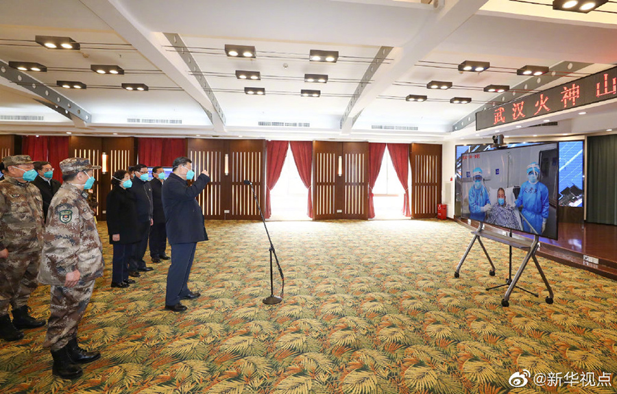 “你們都穿著防護服、戴著口罩,我看不到你們完整的面容,但你們是我心目中最可愛的人!”在武漢火神山醫(yī)院,習近平總書記同正在病區(qū)工作的醫(yī)務人員代表視頻連線,“我在電視里看到一些畫面,你們摘下口罩后,臉上傷痕累累,看了讓人心疼。你們是最美天使,是光明的使者、希望的使者!”(文字:張曉松、朱基釵 攝影:鞠鵬,謝環(huán)馳)