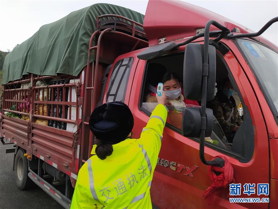 四川省交通運輸廳高速公路交通執(zhí)法第五支隊雅康大隊隊長強薇在雅康高速公路上進(jìn)行防疫檢查(2月1日攝)。 新華社發(fā)