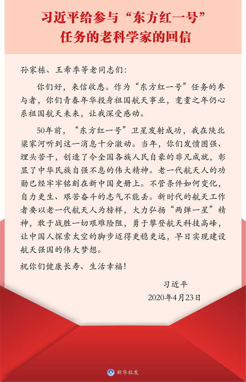 習(xí)近平給參與“東方紅一號(hào)”任務(wù)的老科學(xué)家的回信