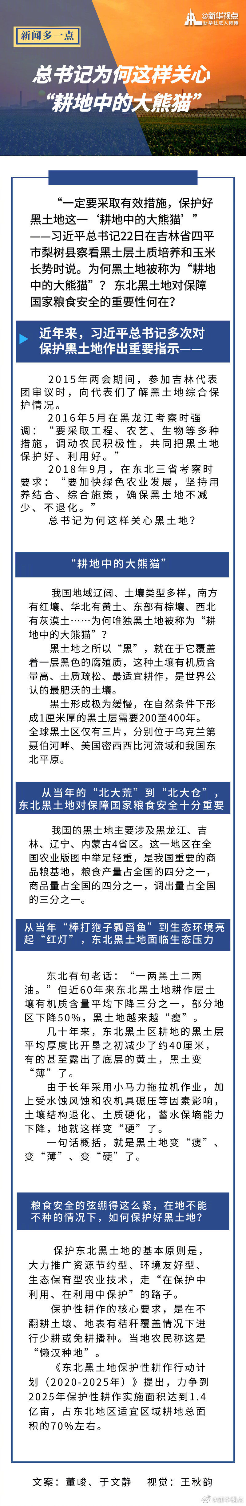 “一定要采取有效措施,保護好黑土地這一‘耕地中的大熊貓’”——習(xí)近平總書記22日在吉林省四平市梨樹縣察看黑土層土質(zhì)培養(yǎng)和玉米長勢時說。為何黑土地被稱為“耕地中的大熊貓”? 東北黑土地對保障國家糧食安全的重要性何在?一起戳圖了解