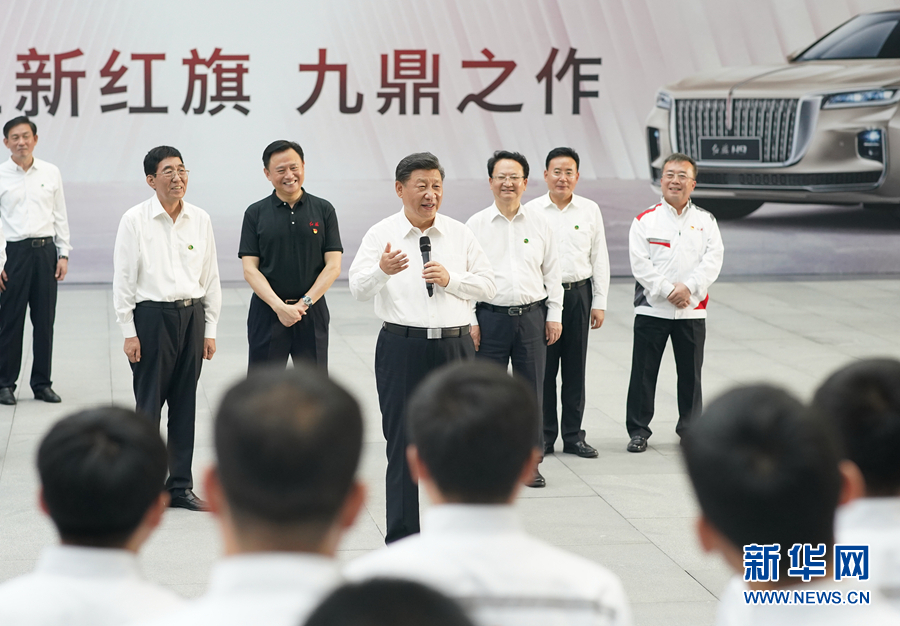 7月22日至24日,中共中央總書記、國(guó)家主席、中央軍委主席習(xí)近平在吉林省考察。這是7月23日下午,習(xí)近平在長(zhǎng)春市一汽集團(tuán)研發(fā)總院,同職工代表親切交流。 新華社記者 王曄 攝