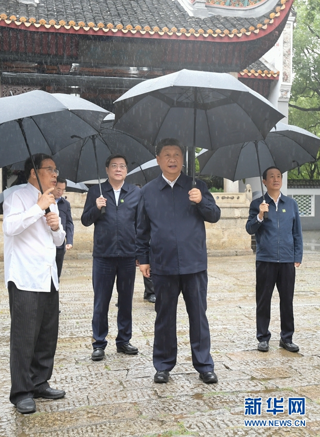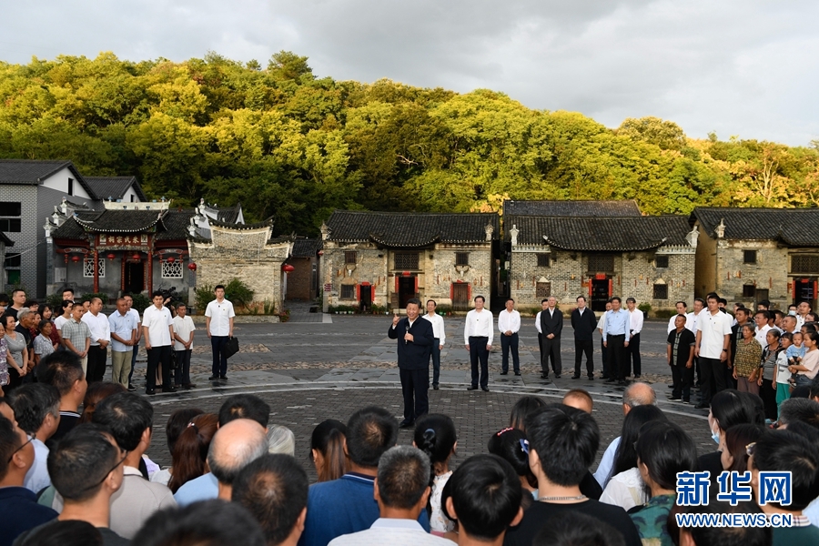 9月16日至18日,中共中央總書記、國家主席、中央軍委主席習近平在湖南考察。這是16日下午,習近平在郴州市汝城縣文明瑤族鄉(xiāng)沙洲瑤族村察看村容村貌,同村民親切交談。新華社記者 謝環(huán)馳 攝