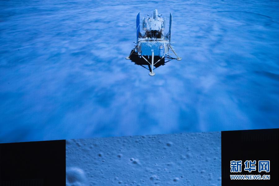 12月1日23時11分,嫦娥五號探測器成功著陸在月球正面西經(jīng)51.8度、北緯43.1度附近的預(yù)選著陸區(qū),并傳回著陸影像圖。這是在北京航天飛行控制中心拍攝的嫦娥五號探測器落月瞬間。新華社記者 金立旺 攝