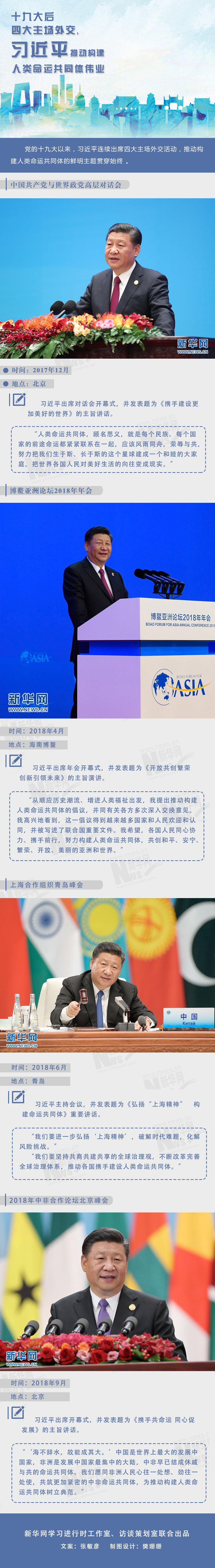 【學(xué)習(xí)進(jìn)行時(shí)】黨的十九大以來(lái),習(xí)近平連續(xù)出席四大主場(chǎng)外交活動(dòng),深入闡述了“人類命運(yùn)共同體”這一理念。在黨的十九大勝利召開一周年之際,新華社《學(xué)習(xí)進(jìn)行時(shí)》原創(chuàng)品牌欄目“講習(xí)所”推出“回望十九大一年間”系列之《四大主場(chǎng)外交,習(xí)近平深入闡述這一理念》,為您梳理解讀。