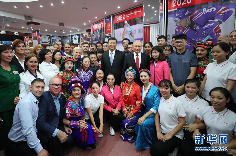 2018年9月12日,國(guó)家主席習(xí)近平在符拉迪沃斯托克同俄羅斯總統(tǒng)普京一起訪問“海洋”全俄兒童中心。這是習(xí)近平和普京同中俄青少年代表及中心教職工代表合影。 新華社記者鞠鵬攝