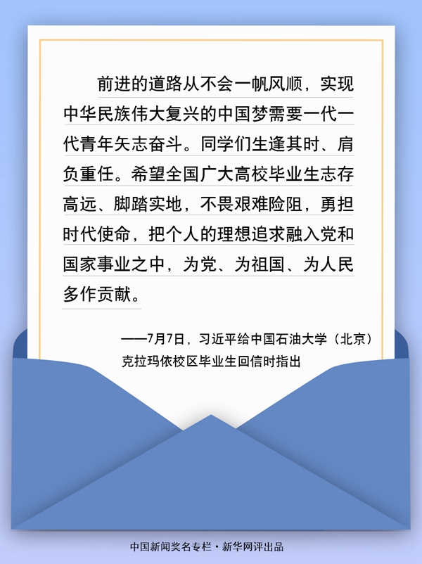 近日,中國石油大學(xué)(北京)克拉瑪依校區(qū)的118名畢業(yè)生給習(xí)近平總書記寫信,匯報了大學(xué)四年學(xué)習(xí)和思想上的收獲,表達(dá)了扎根西部、建設(shè)邊疆的堅強(qiáng)決心。總書記回信肯定他們到邊疆基層工作的選擇,并對廣大高校畢業(yè)生提出殷切期望。