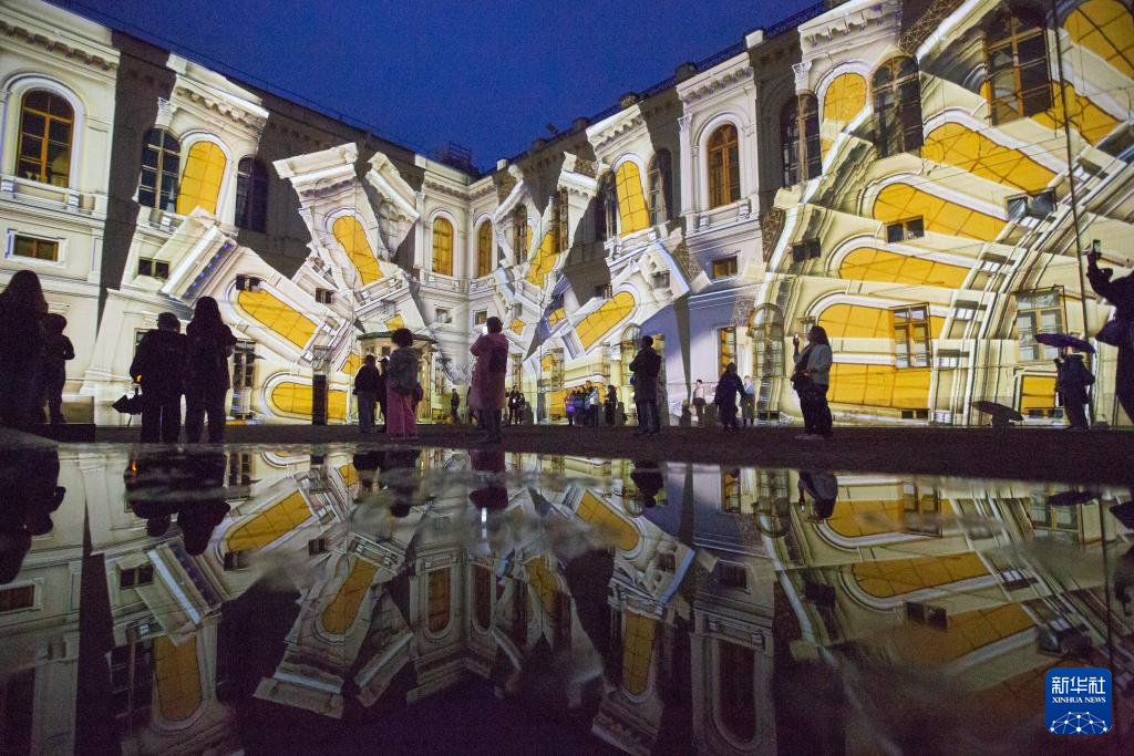 俄罗斯圣彼得堡附近的加特契纳宫17日至19日举办国际灯光艺术节,来自俄罗斯、土耳其、突尼斯和西班牙等国的多媒体艺术领域专业人士展示了自己的作品。本届艺术节主题为“展望未来”,旨在用现代技术描绘对未来生活的想象,展现人与科技的和谐关系。