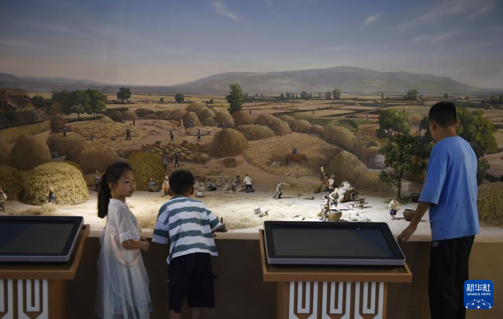9月16日,小朋友在温县小麦博物馆内参观。