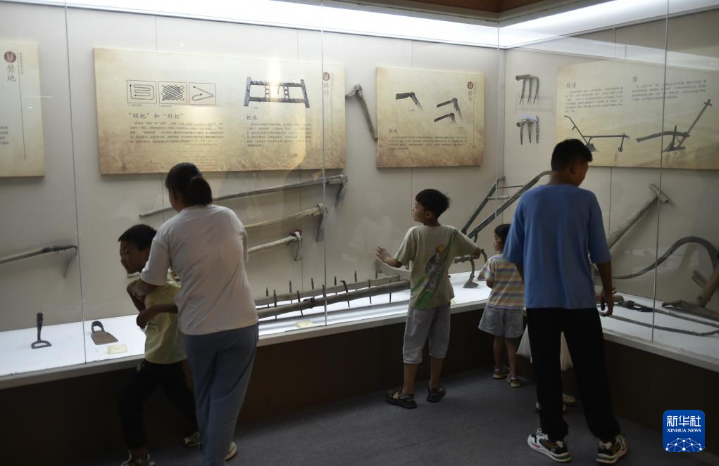 9月16日,观众在温县小麦博物馆内参观展出的农具。