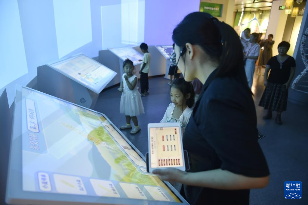 9月16日,小朋友在温县小麦博物馆内体验电子互动设备。