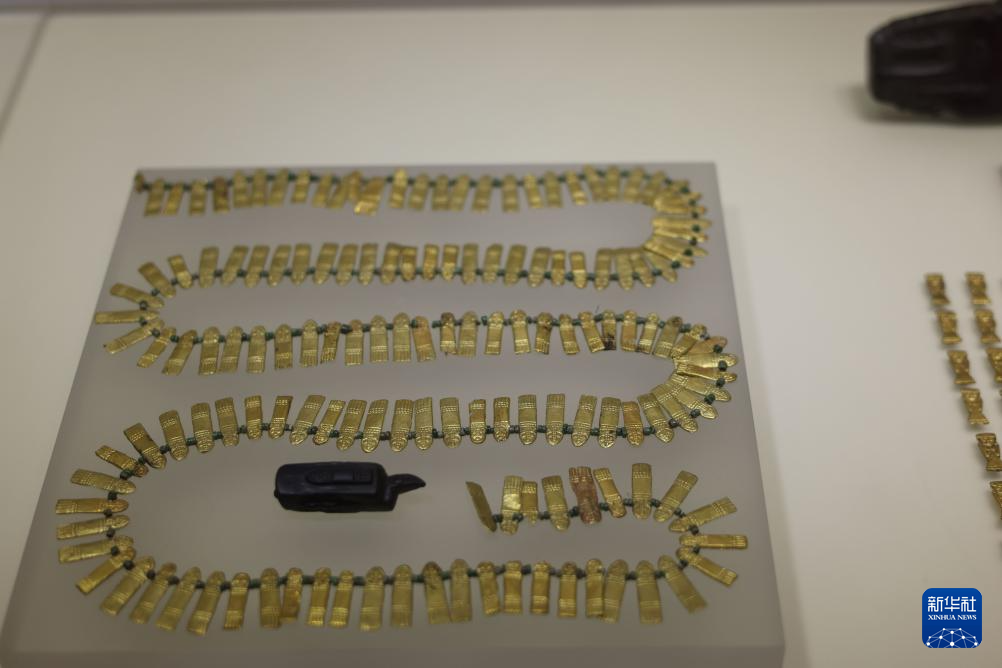 这是11月1日在哥伦比亚首都波哥大的黄金博物馆内拍摄的黄金项链。