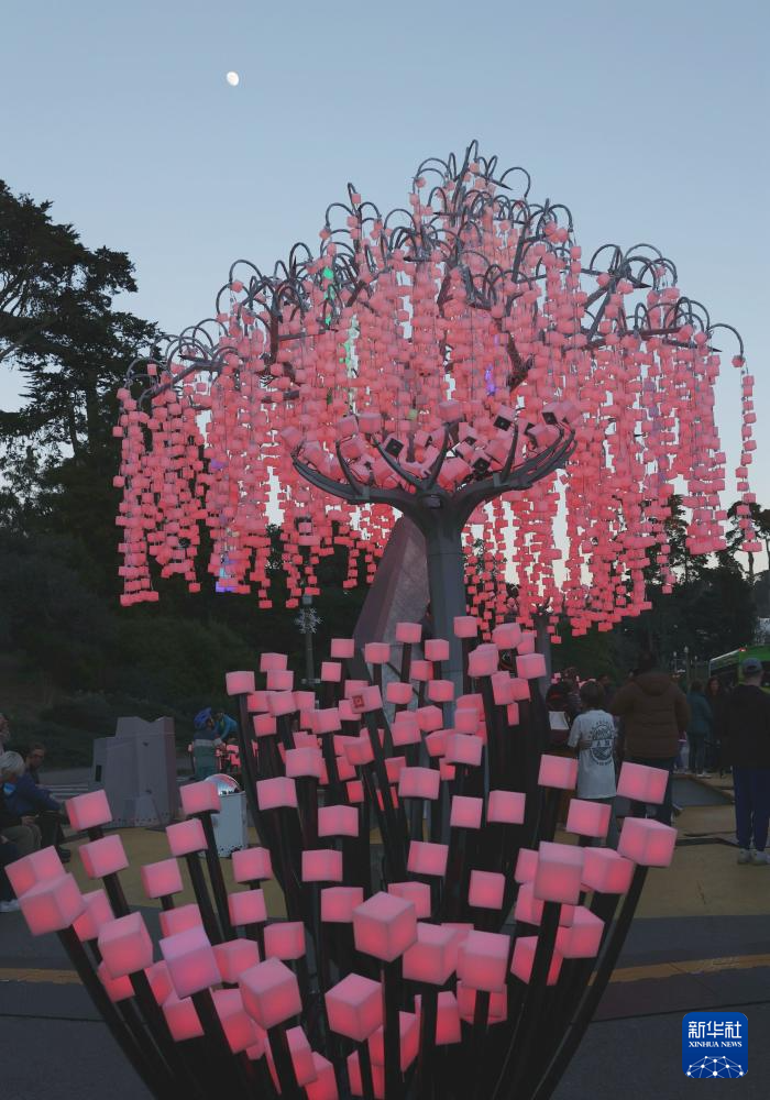 一座森林主题的灯光艺术装置从2023年12月7日至2024年4月28日在美国旧金山的金门公园展出,增添了浓厚的节日氛围。