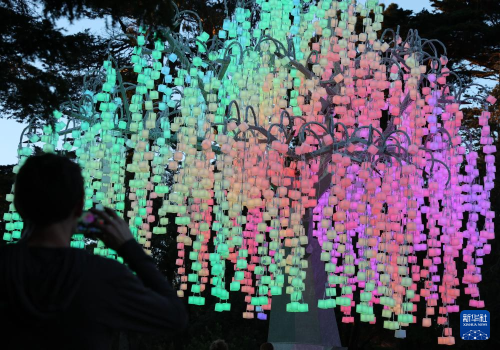 12月23日,一名参观者在美国旧金山的金门公园拍摄灯饰。