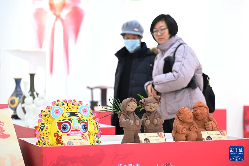 12月26日,市民在河北省群众艺术馆欣赏非遗文创作品。