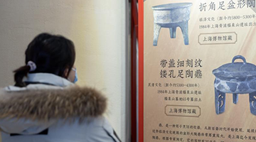 12月27日,观众在展览现场观看介绍热贡艺术的书籍资料。