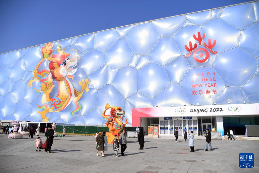 2月3日,游客在国家游泳中心“水立方”参观“龙耀水立方,喜乐过龙年”跨年展览。