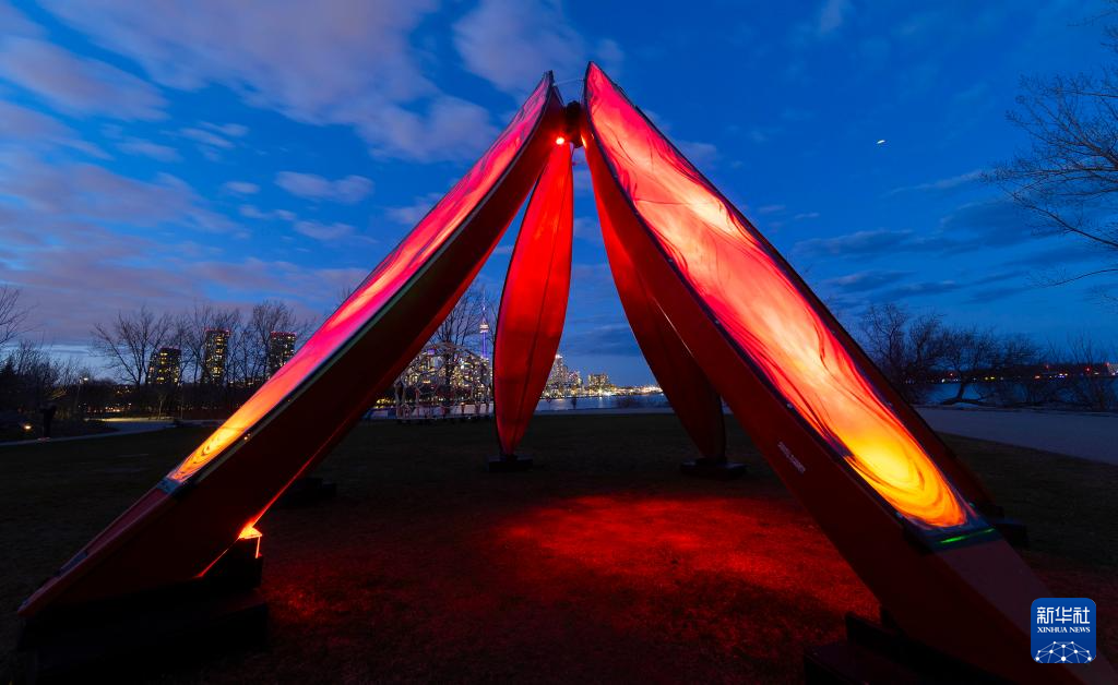 这是4月15日在加拿大多伦多艺术灯光秀上拍摄的展出作品。新华社发(邹峥摄)