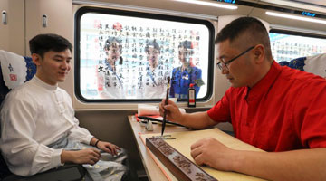5月1日,“小小讲解员”在四川省内江市张大千博物馆为游客义务讲解。