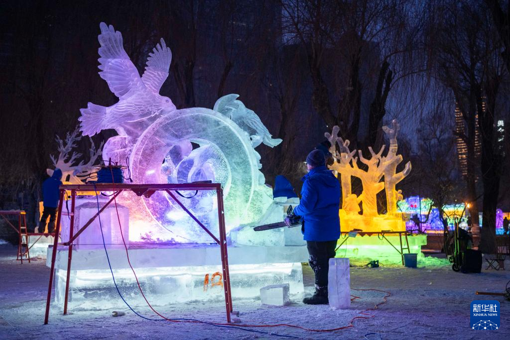 当日,在哈尔滨市兆麟公园举行的第44届全国专业冰雕比赛进入第2个比赛日,来自全国的冰雕师加紧创作冰雕作品。这些冰雕将作为公园冰雪景观的一部分,为市民游客献上一场冰雪艺术的视觉盛宴。