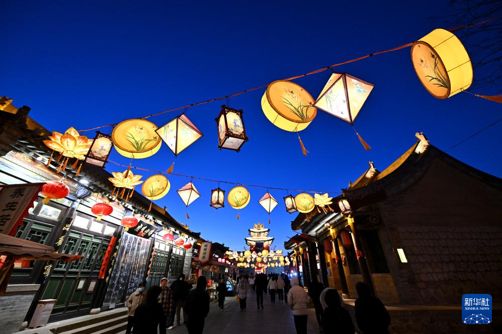 2月5日,游人在太原市晋源区太原古县城赏花灯。