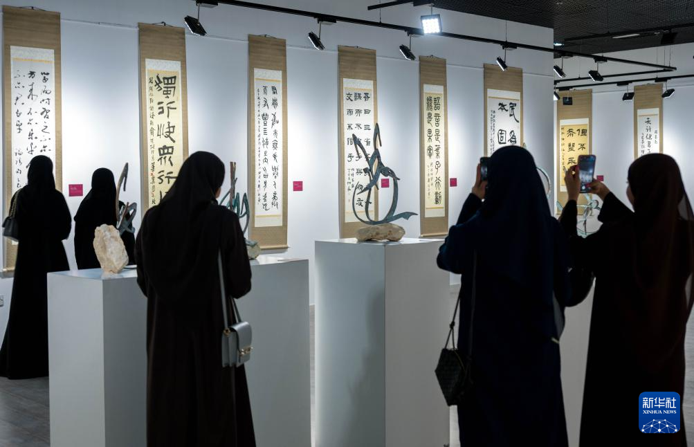 4月24日,人们参观卡塔尔多哈卡塔拉文化村举行的中卡书法交流展。
