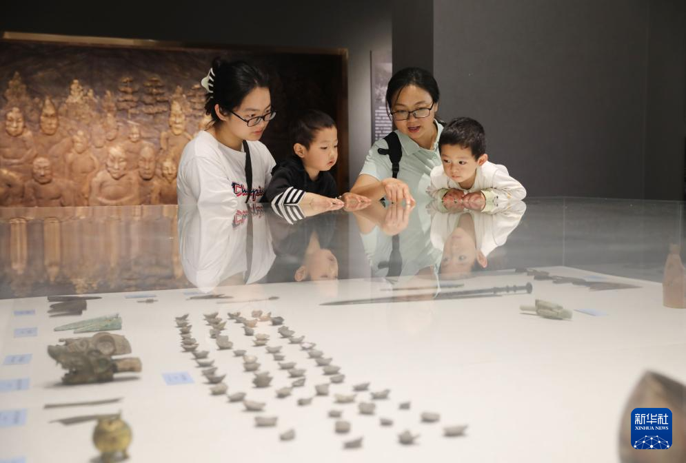 5月3日,观众在山东省临沂市银雀山汉墓竹简博物馆参观。