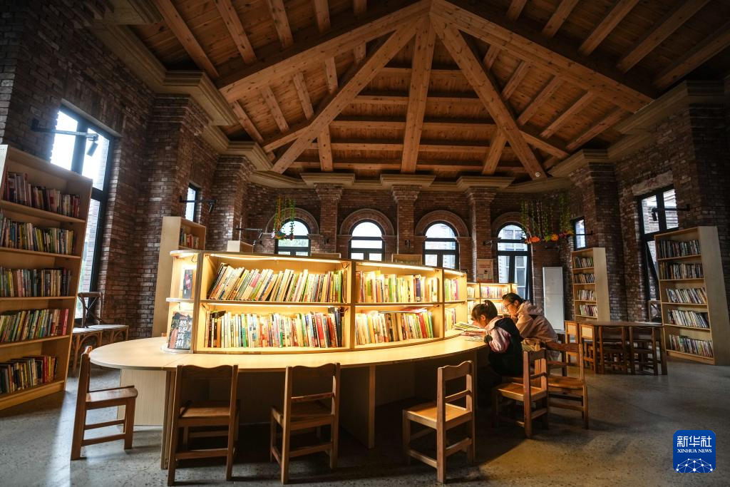 10月6日,游客在沈阳奉天工厂文创园内的城市书房内阅读。