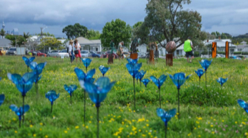 11月17日,民众在拉脱维亚首都里加举行的灯光节上欣赏滨海公园的灯光艺术装置。