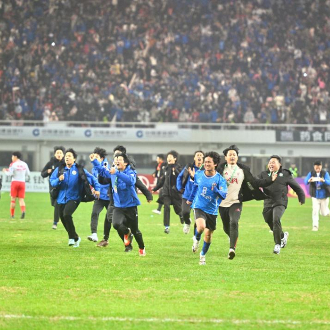 永州队客场爆冷击败长沙队后,不少动人场景和“金句”被捕捉——球队主教练黄楚儒手持扩音器,向球迷看台大喊“你敢相信这是真的吗”;队员张涛在采访中放言“计划有变,准备夺冠”;永州多地烟花鞭炮齐鸣,球迷直呼“过年了”。