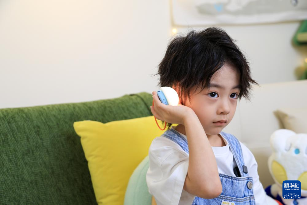 12月21日,在位于深圳的全球创新旗舰店inno100,一名儿童与AI玩具Ropet互动。