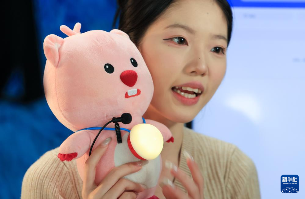 这是10月23日在广东汕头举行的第24届汕头·澄海国际玩具礼品博览会上拍摄的AI毛绒玩具。
