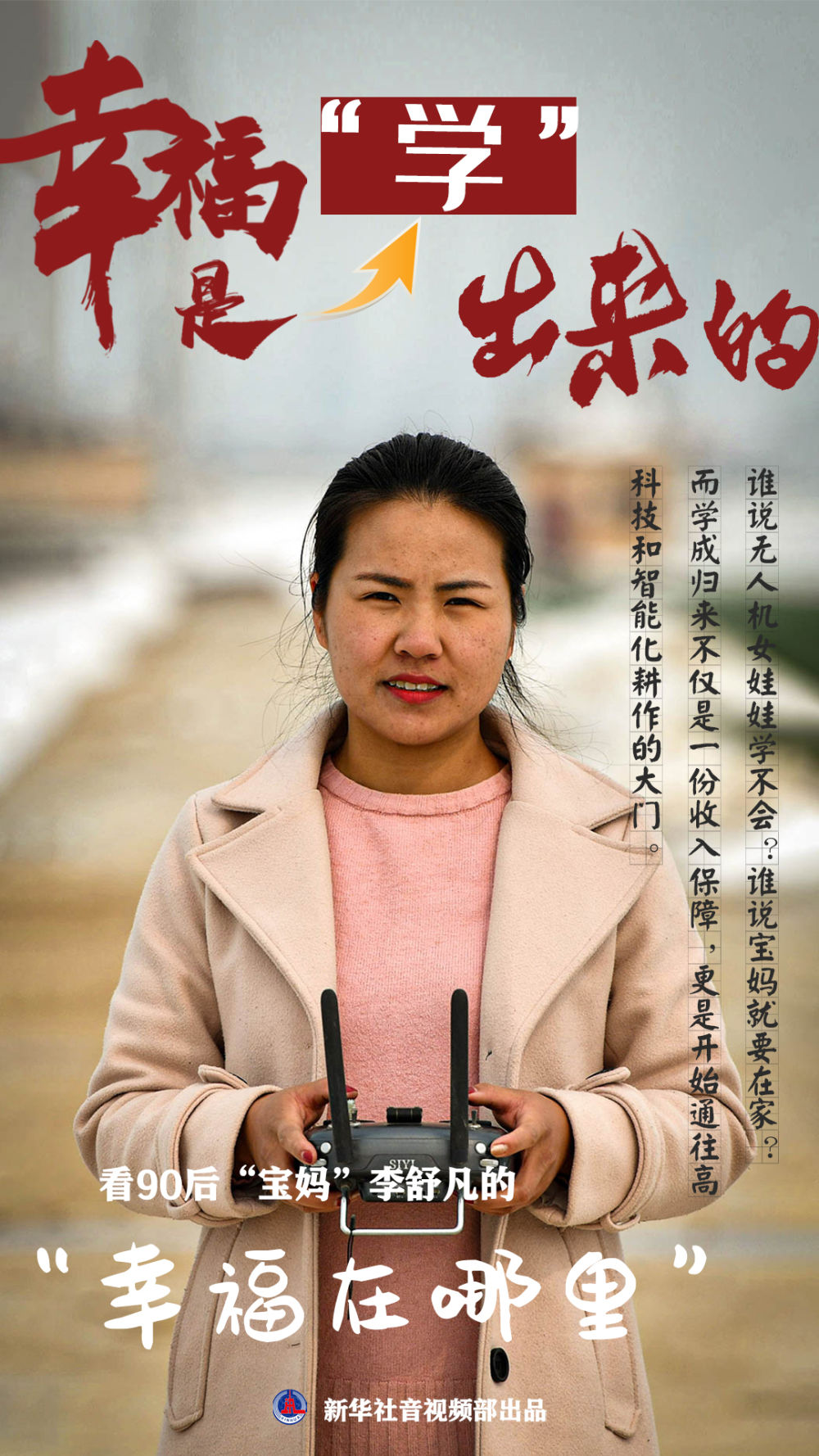 “其實一開始挺難的,身邊都沒人接觸過無人機。我是個‘寶媽’,孩子還比較小。村干部來做工作的時候,家里人都說,這技術一般人能學會嗎?”李舒凡說。