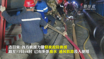 應(yīng)急、消防、電力、衛(wèi)健等多部門人員正緊張有序開展工作。在多方救援力量的一同努力下,事發(fā)后7小時,第一臺水泵就完成安裝并投入使用。40個小時內(nèi),發(fā)生事故煤礦共有7個排水泵先后完成安裝和投用。