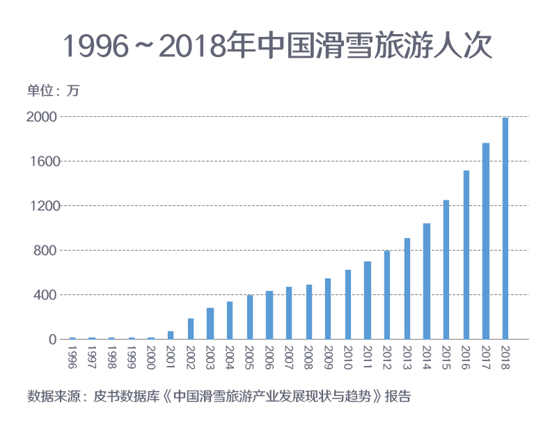 ??? 從1996年發(fā)展至今, 我國滑雪旅游人次實現(xiàn)了質的飛躍。截至2018年底, 我國滑雪人次為1970萬, 同比增長12.57%?;邶嫶蟮幕┤舜魏褪袌鲆?guī)模,中國已被認為是全球主要滑雪市場之一,年滑雪人次已超過一些擁有成熟滑雪市場的國家。