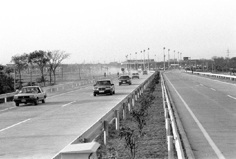 我國第一條新筑的全立交、全封閉、現(xiàn)代化設(shè)施齊全的滬嘉高速公路1988年10月31日下午正式通車。公路全長20.5公里(含兩端入城段道路),路寬45米,為4車道。晝夜通車可達(dá)4萬輛。新華社記者張劉仁攝(1988年11月15日發(fā))