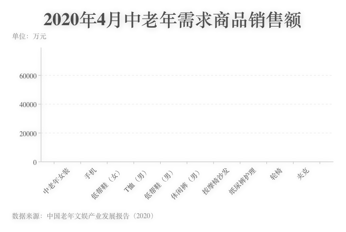 ????? 艾瑞數(shù)據(jù)顯示,2020年4月,銷售額排名前三的中老年需求商品中,2類商品為女性消費(fèi)品,其中中老年女裝的銷售額是排名第二的手機(jī)的2倍,反映了中老年女性比男性具有更強(qiáng)的消費(fèi)需求。