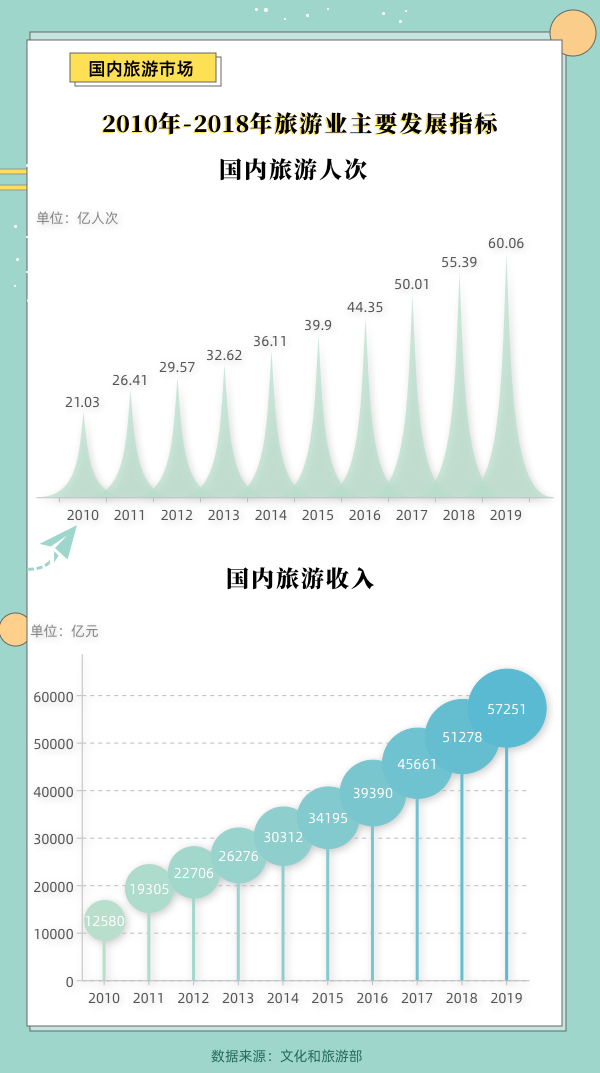 ????? 隨著生活水品的不斷提高,人民的旅游消費潛力被進一步激發(fā)。假日經(jīng)濟所釋放的潛力與活力已成為助推國內(nèi)經(jīng)濟持續(xù)穩(wěn)定恢復(fù)、構(gòu)建新發(fā)展格局的重要動力。根據(jù)文化和旅游部發(fā)布的數(shù)據(jù),近年來國內(nèi)旅游市場持續(xù)平穩(wěn)增長。