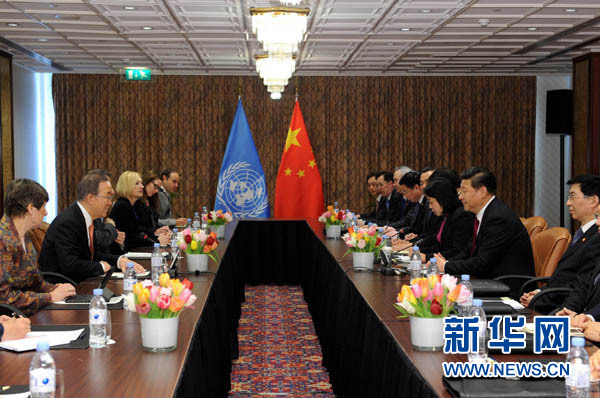 3月23日,國家主席習(xí)近平在荷蘭會見聯(lián)合國秘書長潘基文。 新華社記者 饒愛民 攝