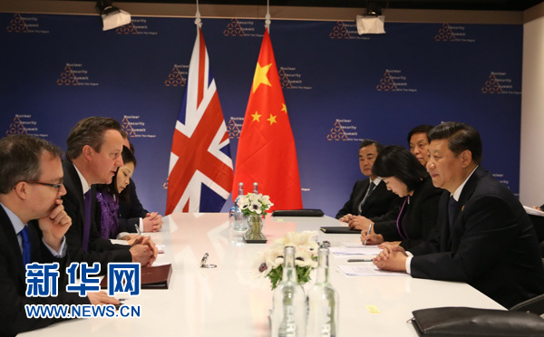 3月25日,國(guó)家主席習(xí)近平在荷蘭會(huì)見(jiàn)英國(guó)首相卡梅倫。新華社記者劉衛(wèi)兵攝