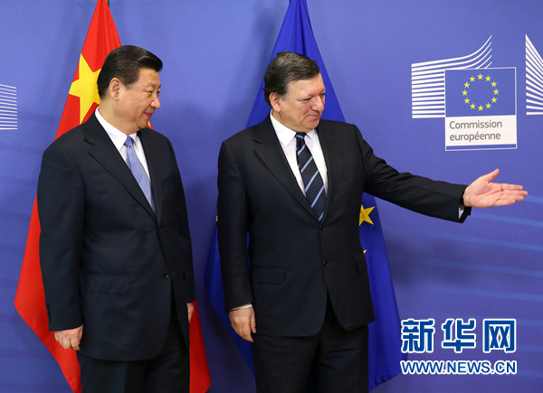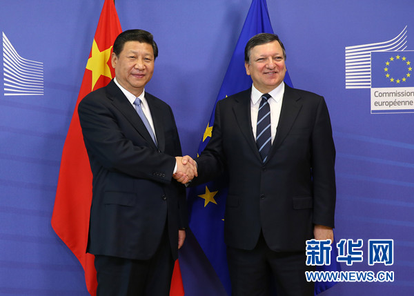 ????3月31日,國(guó)家主席習(xí)近平在比利時(shí)布魯塞爾會(huì)見歐盟委員會(huì)主席巴羅佐。 新華社記者 龐興雷 攝