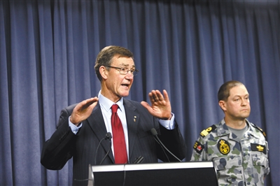 昨日,澳大利亞珀斯,搜索行動(dòng)聯(lián)合協(xié)調(diào)中心負(fù)責(zé)人安格斯·休斯頓介紹搜尋進(jìn)展。新京報(bào)記者 王叔坤 攝