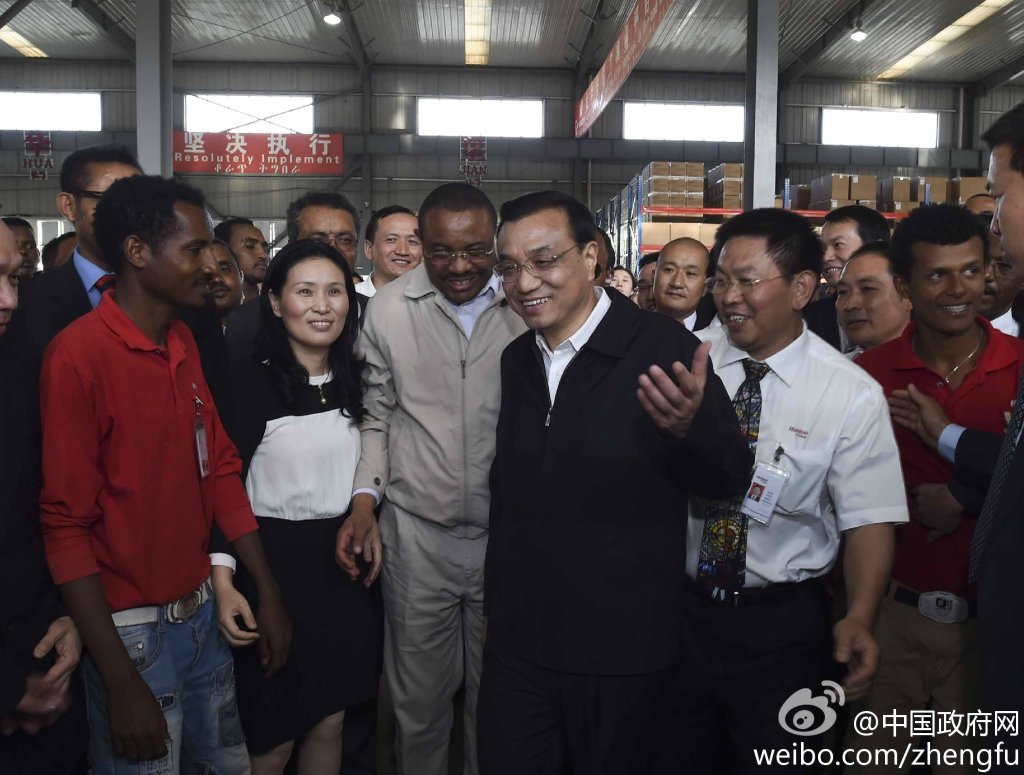 新華網(wǎng)北京5月6日電 據(jù)中國政府網(wǎng)微博報道,5日下午,李克強在埃塞總理陪同下參觀東方工業(yè)園。該園由中方投資興建,目前已為當?shù)靥峁?000余個就業(yè)崗位。李克強說,中國愿意把可轉(zhuǎn)移的勞動密集型產(chǎn)業(yè)優(yōu)先轉(zhuǎn)移到非洲,帶動當?shù)鼐蜆I(yè),促進發(fā)展,增強非洲自我發(fā)展能力,造福雙方人民。