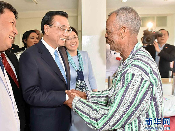??? 5月6日,中國國務(wù)院總理李克強(qiáng)與埃塞俄比亞總統(tǒng)穆拉圖一同來到亞的斯亞貝巴阿勒塔醫(yī)院,看望受益于中國免費(fèi)白內(nèi)障手術(shù)“光明行”活動(dòng)的埃塞俄比亞患者。新華社記者李濤攝