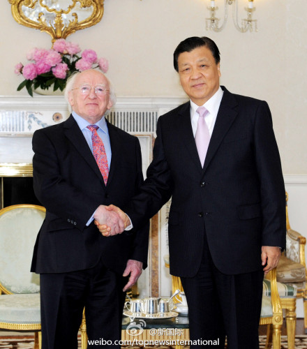 ??? 新華網(wǎng)北京6月18日電 據(jù)新華社“新國(guó)際”微博報(bào)道,中共中央政治局常委、中央書記處書記劉云山17日結(jié)束愛(ài)爾蘭之行。他在會(huì)見愛(ài)總統(tǒng)希金斯時(shí)說(shuō),中國(guó)與愛(ài)爾蘭雖相距遙遠(yuǎn),但在雙邊和國(guó)際事務(wù)中存在廣泛的共同利益,兩國(guó)關(guān)系成為不同幅員、制度、發(fā)展階段國(guó)家平等相待、友好合作的典范。
